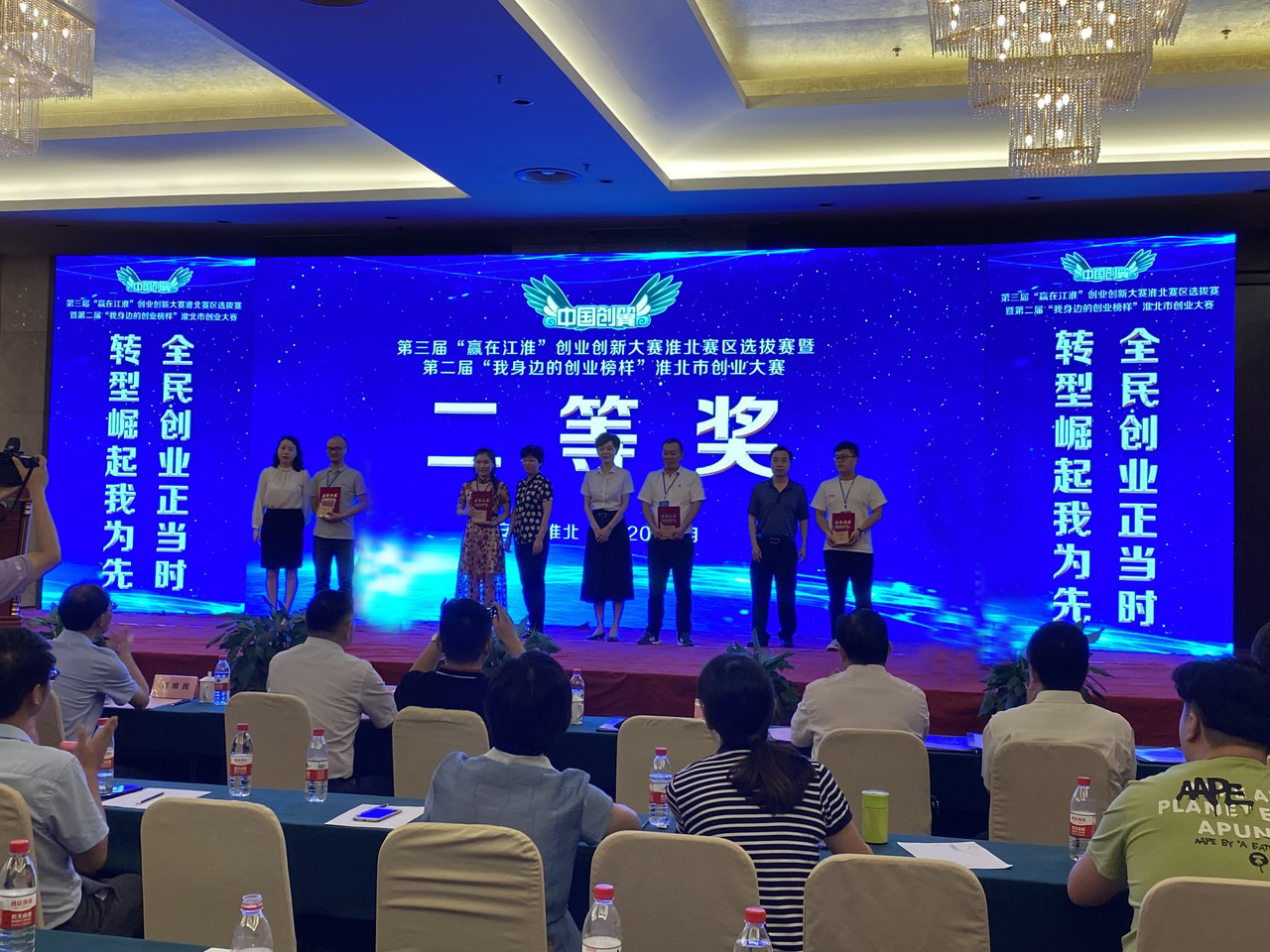 2020年7月26日,安徽省第三屆“贏在江淮”淮北賽區(qū)選拔賽暨第二屆“我身邊的創(chuàng)業(yè)榜樣”淮北市創(chuàng)業(yè)大賽決賽,熱烈祝賀我公司2020淮北創(chuàng)業(yè)大賽榮獲二等獎.